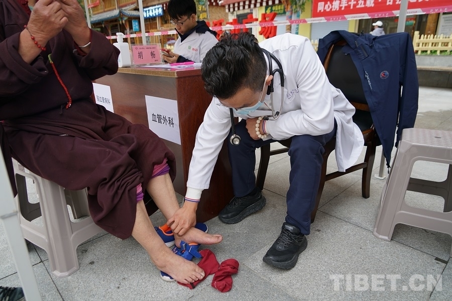 7月6日傍晚,歷經(jīng)一整天的奔波后,胡暢所在的“同心·共鑄中國心”甘孜行白玉縣醫(yī)療專家團(tuán)抵達(dá)白玉縣城。在接下來七天的幫扶活動(dòng)中,胡暢先后在白玉縣新時(shí)代文明實(shí)踐廣場、縣人民醫(yī)院、昌臺(tái)片區(qū)阿察鎮(zhèn)、河坡鄉(xiāng)中心小學(xué)等地義診,并在縣人民醫(yī)院為到場的當(dāng)?shù)蒯t(yī)護(hù)人員和消防隊(duì)員開展了一場以血管外科為主題的健康科普講座?;顒?dòng)期間,一聲聲道謝,一條條哈達(dá),一張張笑臉,道不盡的是患者們的感激,凝結(jié)的是胡暢與甘孜白玉再也割舍不斷的情感聯(lián)結(jié)。“在街頭和群眾相遇,他們知道我們是北京過來的義診醫(yī)生,很歡迎我們,會(huì)微笑著和我們打招呼,讓人覺得很溫暖。”