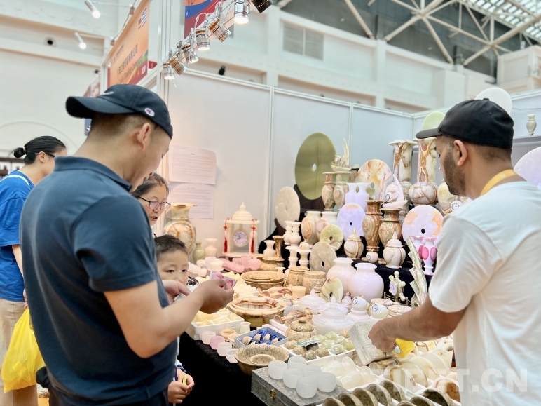 “你好,喜歡哪個給您介紹!”來自巴基斯坦的Sajid正和前來選購的客戶介紹巴基斯坦手工玉產(chǎn)品,展銷點有各式各樣的擺件、茶具、鐘表等,種類繁多,十分精美。他說:“我來拉薩已經(jīng)有三天了,這里氣候舒服,環(huán)境優(yōu)美,我還去過西藏的日喀則,那是個好地方。聽說雪頓節(jié)是西藏非常盛大的傳統(tǒng)節(jié)日,我很高興借此機會帶著巴基斯坦的工藝品來到拉薩,希望拉薩的朋友們喜歡?!?nbsp;