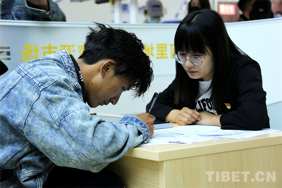 招聘會現(xiàn)場設(shè)有咨詢區(qū)、面試區(qū)及休息區(qū),提供一站式求職服務(wù)。會場內(nèi)的一塊大屏幕吸引了很多求職者的目光,工作人員介紹道:“屏幕滾動展示陜西省、河北省的援藏崗位。我們是鼓勵區(qū)外就業(yè)的,有補貼政策。為爭取這些崗位,我們積極主動與河北省、陜西省對接,通過回訪兩省三企等方式降低崗位招入要求,進一步增加崗位匹配度?!?/p>