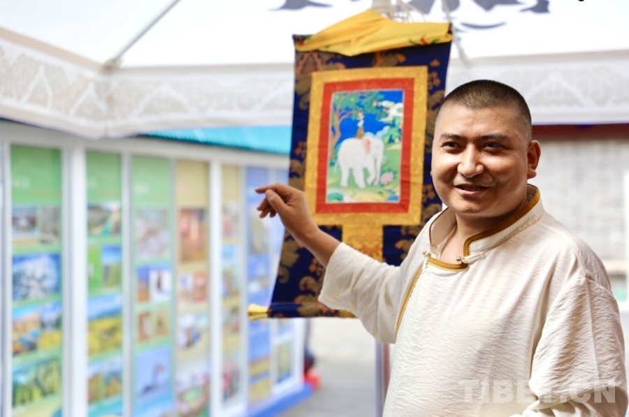活動結束后,扎西尖措接受了記者的采訪。他說:“唐卡作為一種獨具青藏高原特色的繪畫藝術,在千百年的繼承和發(fā)展中,不斷借鑒和吸收周邊各民族的文化藝術精華,經(jīng)過漫長的發(fā)展過程,逐漸形成了眾多異彩紛呈的風格流派,呈現(xiàn)出多姿多彩的風貌特征,并以其龐大的內容體系,獨特的藝術表現(xiàn)形式,非凡的工藝水平在我國乃至世界藝術之林中熠熠生輝。如今隨著時代的進步,唐卡不僅僅限于宗教文化,更是民間的文化藝術。唐卡繪畫主題既有守正也有創(chuàng)新,有謳歌新時代的題材、也有禮贊廣大人民群眾的圖景。不拘泥于宗教為主的傳統(tǒng)題材。