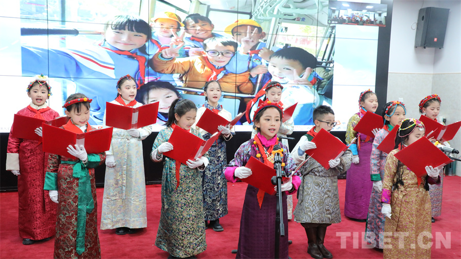 圖為拉薩市實(shí)驗(yàn)小學(xué)和北京市海淀區(qū)中關(guān)村第二小學(xué)共同舉辦的“銘記歷史感黨恩 做新時(shí)代好少年”暨“西藏百萬農(nóng)奴解放紀(jì)念日誦讀歌詠活動(dòng)”