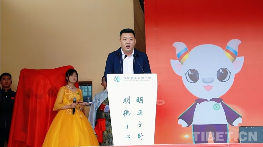 圖為梁新在拉薩北京實驗中學十周年校慶上講話 圖片由校方提供