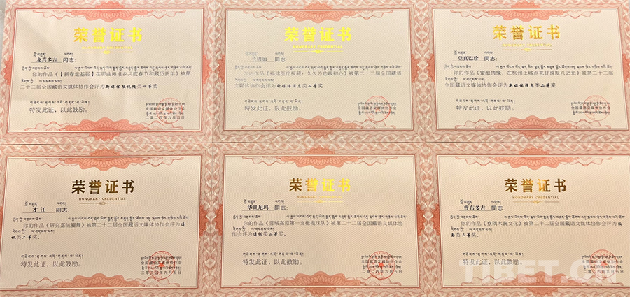 圖為中國西藏網獲獎作品證書 攝影:龍真多吉