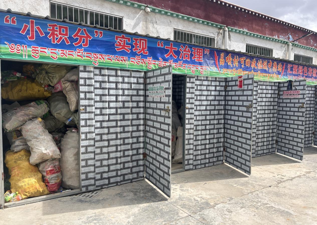 積分制促進(jìn)了社區(qū)聯(lián)結(jié)和經(jīng)濟(jì)消費(fèi),還推動(dòng)了鄉(xiāng)村生態(tài)的良性治理。瓊結(jié)縣加麻鄉(xiāng)昌嘎村駐村工作隊(duì)的格桑多吉展示了“五門聯(lián)排”的可回收垃圾中轉(zhuǎn)站,“這些垃圾由村委會(huì)收集起來(lái)后統(tǒng)一送去回收,回收的資金會(huì)放在‘文化銀行’中用于購(gòu)買新的積分物品?!倍劣凇袄钡膩?lái)源,則依賴“綠色銀行”對(duì)村民的激勵(lì)?!鞍▔牡碾婏堨?、高壓鍋,都可以送到村委會(huì)進(jìn)行統(tǒng)一回收?!备裆6嗉榻B說(shuō),村民將分類整理好的垃圾送至“綠色銀行”,通過(guò)“兩委”班子和村務(wù)監(jiān)督委員會(huì)委員核定之后,可以根據(jù)《綠色銀行兌換項(xiàng)目表》直接兌換商品用于日常生產(chǎn)生活。自“綠色銀行”推行以來(lái),昌嘎村累計(jì)兌換商品總價(jià)值6千元,讓行動(dòng)變積分、積分變商品,充分調(diào)動(dòng)了群眾參與鄉(xiāng)村生態(tài)建設(shè)的積極性。