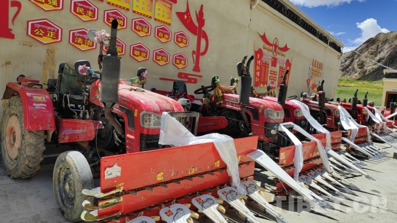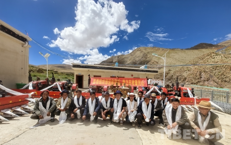 發(fā)放儀式當(dāng)天,拉隆村13戶村民代表來到現(xiàn)場,喜笑顏開,激動的心情難以言表?!罢鏇]想到駐村工作隊能夠這么貼心地幫助我們,不僅捐贈了農(nóng)機(jī),還頂著大太陽下田幫我們收青稞,真是太感動,太感謝了!”村民石塔望著自己剛收過的青稞地,對駐村工作隊和村委會的同志們一再表示感恩和謝意。