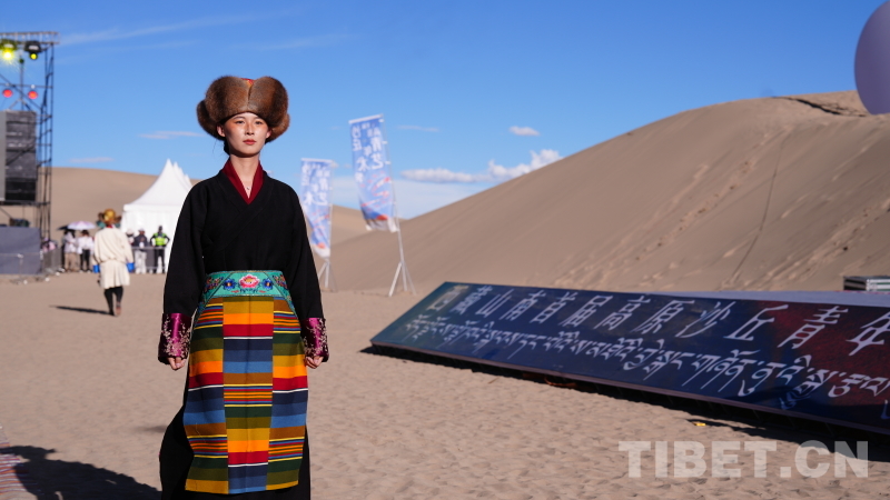 服裝大秀環(huán)節(jié),措美縣“扎扎服飾”、浪卡子縣“羊卓服飾”、隆子縣“珞巴服飾”、錯(cuò)那縣“門巴服飾”等山南各縣區(qū)代表性服飾,在沙漠的舞臺(tái)上綻放異彩,既保留了民族風(fēng)情,又增添了青春與時(shí)尚的元素。模特們身著華服,在沙漠中穿梭,仿佛帶領(lǐng)觀眾穿越時(shí)空,感受了一場跨越千年的文化之旅。