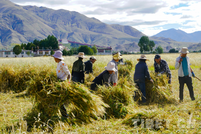 中國(guó)西藏網(wǎng)訊 金秋時(shí)節(jié),西藏自治區(qū)各地陸續(xù)迎來(lái)青稞的成熟與收割。世界青稞之鄉(xiāng)日喀則田間地頭到處是麥穗金黃、麥浪起伏,忙碌一年的農(nóng)民們開(kāi)鐮收割,確保青稞顆粒歸倉(cāng),田間一派繁忙的收割景象。