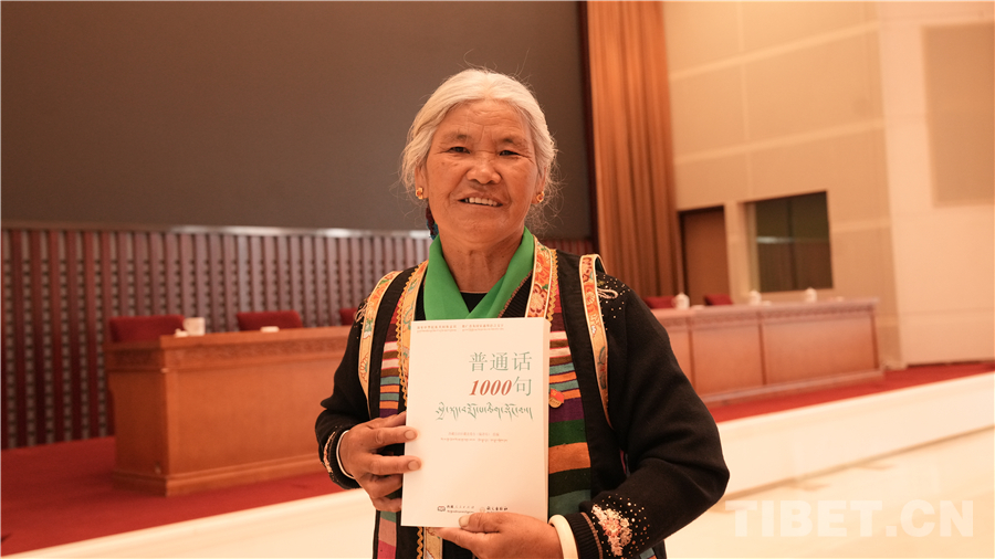新書發(fā)布會(huì)結(jié)束后,來(lái)自山南市乃東區(qū)昌珠鎮(zhèn)的群眾代表尼瑪曲珍對(duì)著藏文的譯音標(biāo)注念了幾句常用普通話,她說(shuō):“發(fā)布會(huì)上,我一直在翻看這本書,基本都是我們能夠在日常生活和工作中經(jīng)常用到的短句,藏文的譯音標(biāo)注更為我們普通話初學(xué)者提供了很大的便利,回頭我要好好學(xué)習(xí)這本書的內(nèi)容,也將把這書推薦給身邊想要學(xué)好普通話的農(nóng)牧民群眾。”