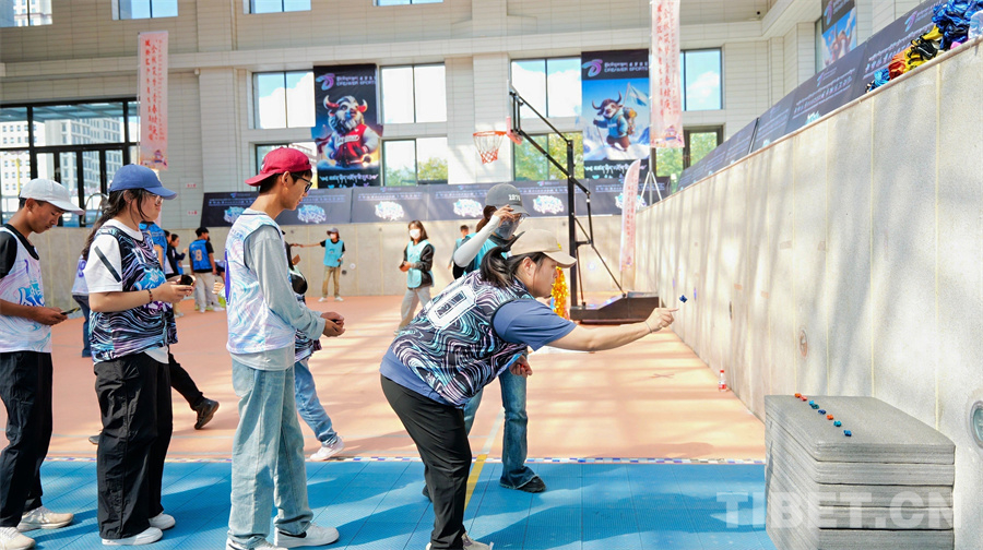 “投壺是中國古代宴飲時做的一種投擲游戲,也是一種禮儀。愛看古裝劇的人應(yīng)該都在影視作品里看過,這是一個由游戲者輪流站在離壺一定距離的地方,用手把箭投向壺中并計算得分的游戲。”“打牛角和阿久(羊拐)是一項流傳至今的西藏古老民間傳統(tǒng)體育活動,具有很強的娛樂性、趣味性和技巧性,能夠鍛煉身體,還能給我們帶來參與其中的快樂……”每項活動開啟前,晉美次旦向現(xiàn)場參與人員一一講解這項運動的由來以及發(fā)展現(xiàn)狀,大家聽得十分認(rèn)真,隨后又積極參加各項活動。活動現(xiàn)場熱鬧非凡、歡聲笑語不斷,營造了濃厚的健身氛圍。