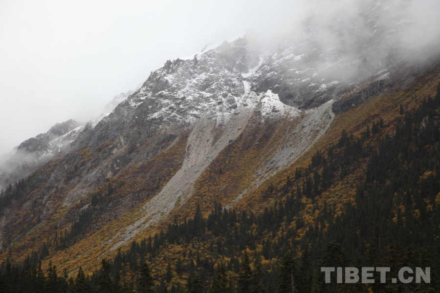 秋日是靜謐的,是金燦燦的,也是火紅的。在西藏自治區(qū)昌都市八宿縣看見的秋色,不僅有山頂?shù)陌籽?,山間黃綠相間的林海,還有半山腰若隱若現(xiàn)的云霧。