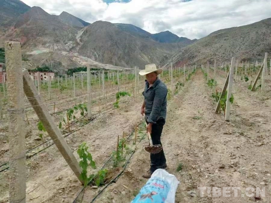 在風(fēng)景如畫(huà)的八宿縣林卡鄉(xiāng)孜嘎村,有一片占地面積200畝的葡萄種植基地,也是昌都市海拔最高的葡萄種植基地。2016年,八宿縣計(jì)劃建立葡萄種植基地,來(lái)自芒康縣納西民族鄉(xiāng)的次成江措在項(xiàng)目中標(biāo)后成為該基地的負(fù)責(zé)人。在次成江措的家鄉(xiāng)芒康,種植葡萄已經(jīng)有200多年的歷史。從小耳濡目染,使他成為遠(yuǎn)近聞名的葡萄種植專家。剛接到這個(gè)項(xiàng)目時(shí),由于對(duì)八宿縣地理環(huán)境不甚了解,次成江措內(nèi)心并沒(méi)有十足的把握。隨后,他從家鄉(xiāng)帶來(lái)優(yōu)質(zhì)葡萄品種“黑珍珠”,驚喜地發(fā)現(xiàn)得益于八宿縣海拔較高、紫外線充足、降雨量較少的優(yōu)勢(shì)條件,“黑珍珠”的生長(zhǎng)情況超出了他的預(yù)期,甚至不需要使用農(nóng)藥?! ?/p>