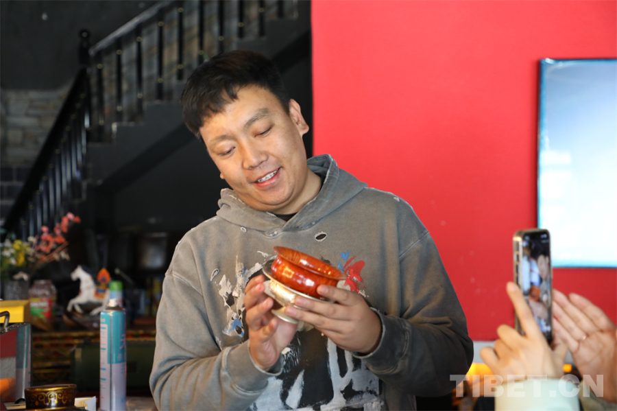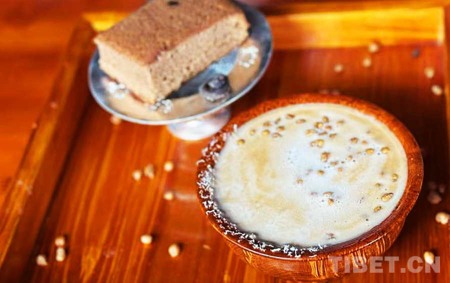 在濃郁的咖啡液里注入青稞奶,撒上當(dāng)?shù)禺a(chǎn)的酸酸的奶渣和青稞?!煌胂銤獾目Х韧瓿闪?。是的,是“一碗咖啡”,索朗群培專門選用了藏族群眾喜愛的傳統(tǒng)木碗用作咖啡杯。