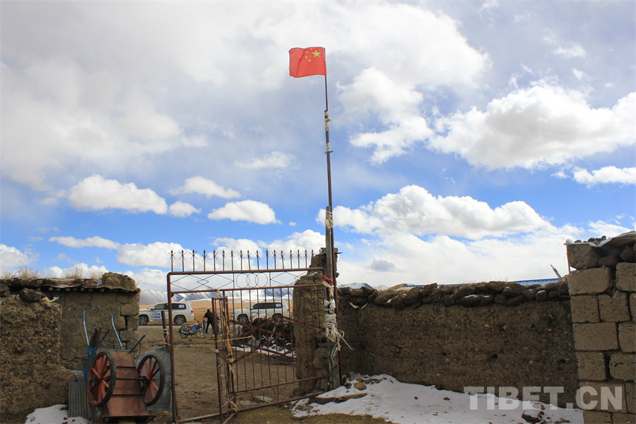 圖為多吉才覺(jué)家門(mén)口飄揚(yáng)的國(guó)旗 攝影:蔣馨悅