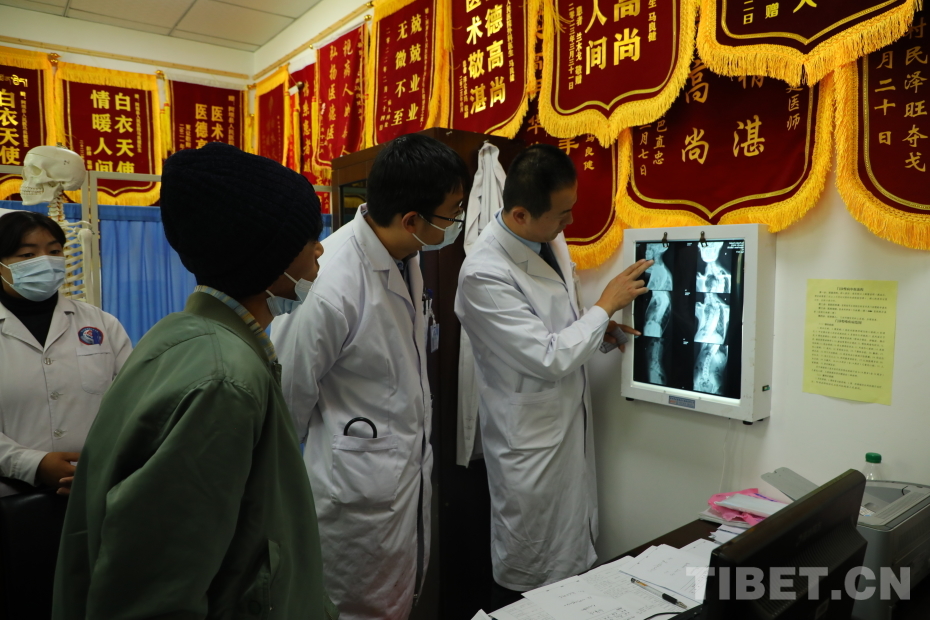 在骨科科室,同樣人潮涌動。骨科疾病是當(dāng)?shù)匕傩盏囊淮罄_??剖覂?nèi)很多人圍著一位患者,他叫扎西能周,今年21歲,是阿壩職業(yè)學(xué)院的學(xué)生。醫(yī)生告訴他脊柱側(cè)彎已達(dá)60度,如果做手術(shù),將得到基金會的全力支持。扎西能周表示,這對他來說是一個福音,他可以重新開始新的生活。這一切都是為了阿壩人民的健康,在這里得到了完美的詮釋。
