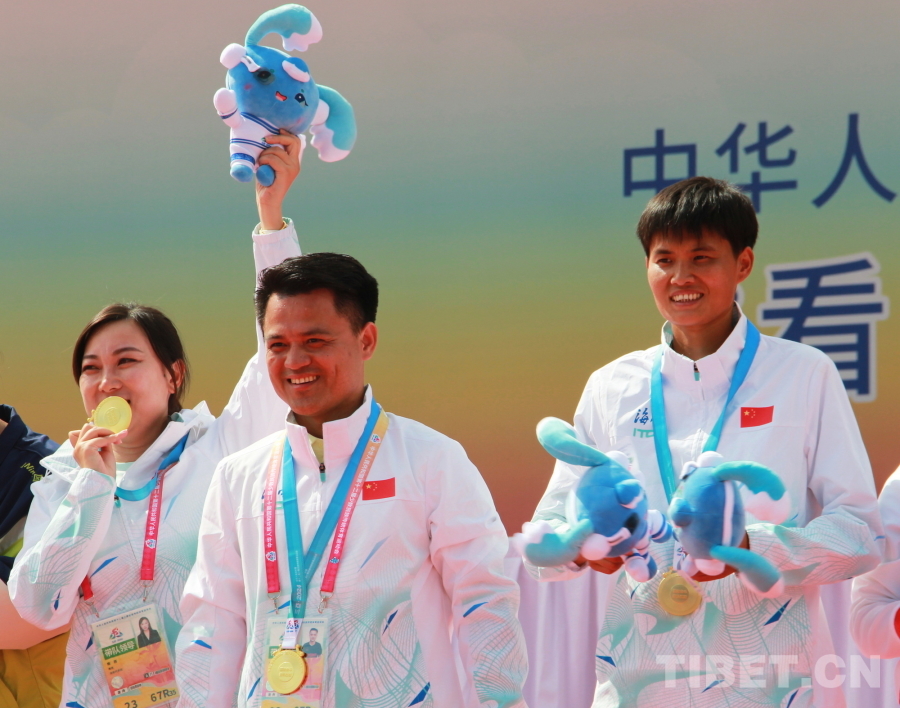 圖為第十二屆全國少數(shù)民族傳統(tǒng)體育運動會1000米標準龍舟女子組頒獎儀式 攝影:劉莉