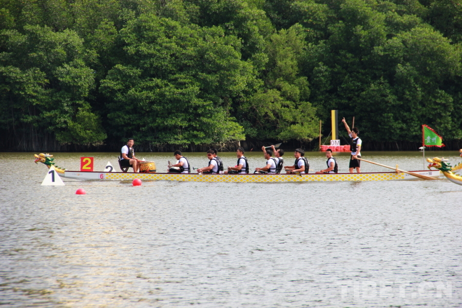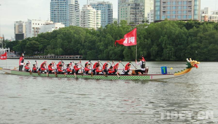 圖為第十二屆全國少數(shù)民族傳統(tǒng)體育運動會龍舟項目中的海南隊 攝影:劉莉