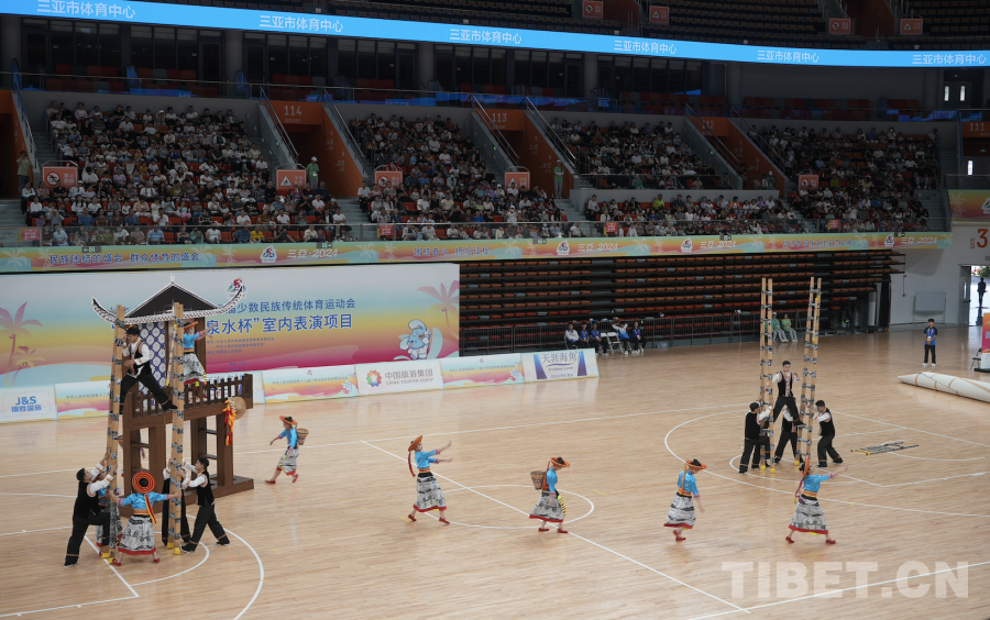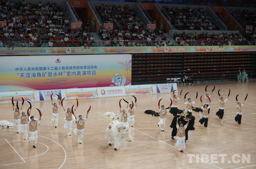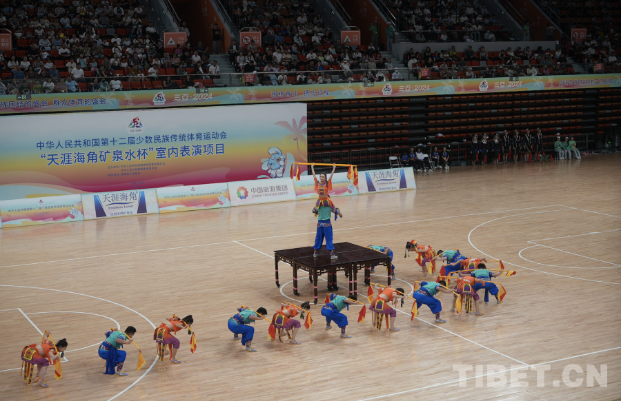 中國西藏網(wǎng)訊 11月24日,第十二屆全國少數(shù)民族傳統(tǒng)體育運動會表演項目(室內(nèi))在海南省三亞市體育中心體育館舉行。(中國西藏網(wǎng) 記者/蘇洋)