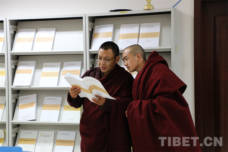 學(xué)員們?cè)诃h(huán)境雅致、設(shè)施完善的中國(guó)藏語(yǔ)系高級(jí)佛學(xué)院圖書(shū)館里“打卡”。該圖書(shū)館擁有豐富的藏文文獻(xiàn)資源,為學(xué)員們提供了舒適的交流場(chǎng)所和學(xué)習(xí)環(huán)境。西藏佛學(xué)院的學(xué)員們也紛紛投入知識(shí)的海洋進(jìn)行閱覽。