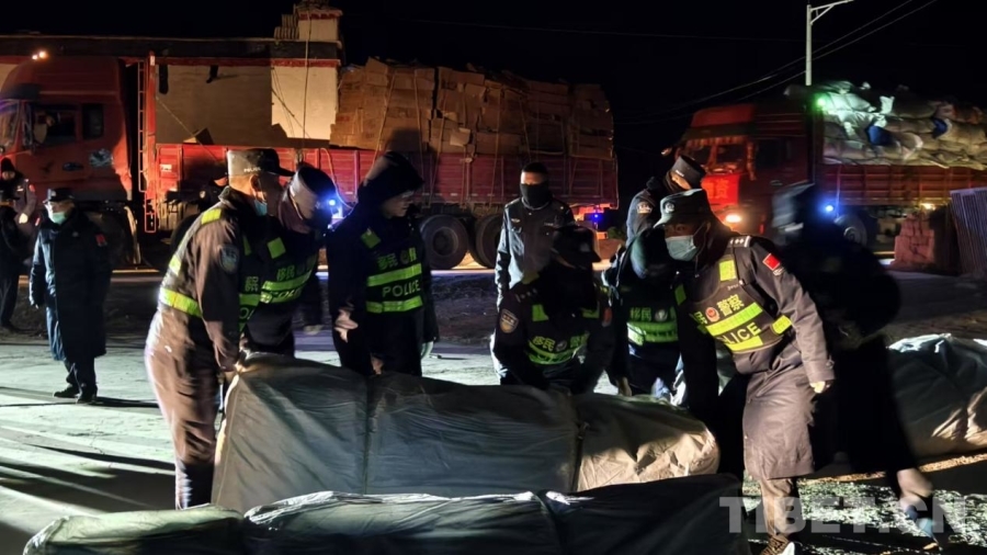 定日縣長所鄉(xiāng)雜村是此次地震受災(zāi)最嚴(yán)重的區(qū)域之一,為了保證寒冷的天氣下群眾有避風(fēng)休息處所,1月7日20時,參與救援的日喀則邊境管理支隊增援民警,等救災(zāi)物資抵達后迅速展開帳篷搭建工作。