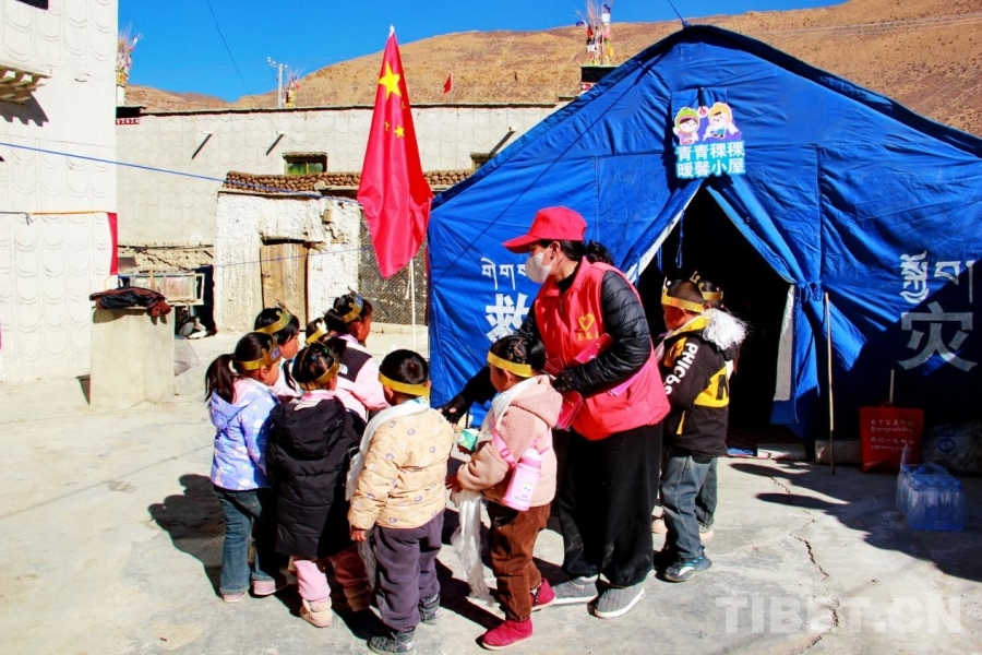 中國西藏網(wǎng)訊 午后,陽光明媚,西藏自治區(qū)日喀則市定結縣江嘎鎮(zhèn)榮貢村村民旦增點旦家院子里的臨時帳篷里傳出陣陣孩子們歡樂的笑聲歌聲。1月18日,旦增點旦的雙胞胎寶寶迎來百天,溫馨的“情暖震后帳篷,共賀雙寶百日”活動在這里舉辦。