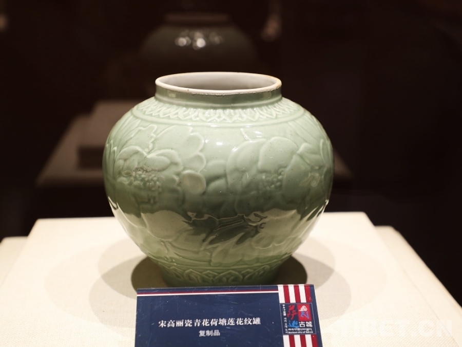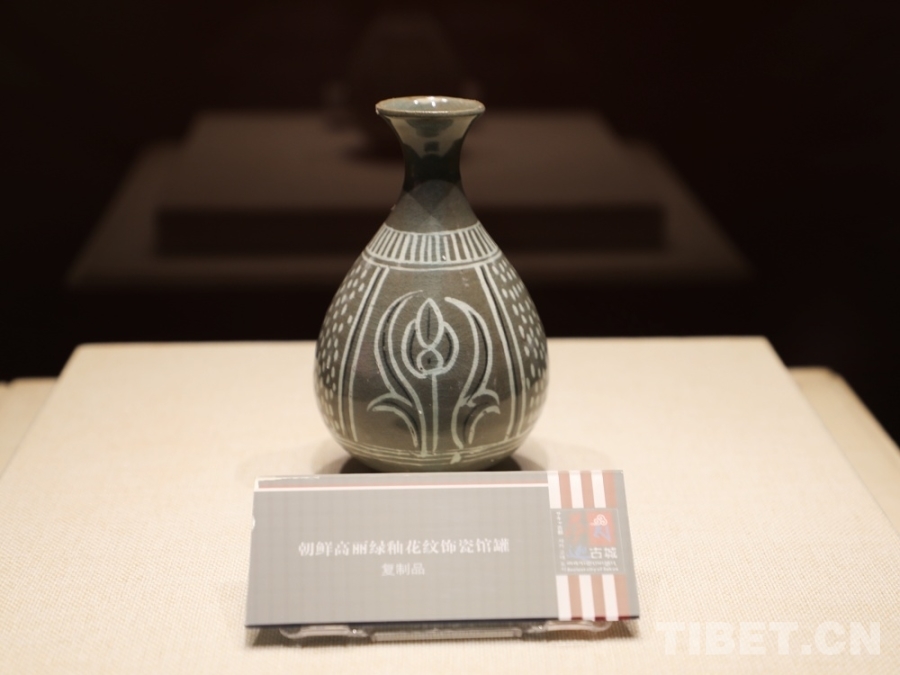 圖為朝鮮高麗綠釉花紋飾瓷館罐(復(fù)制品) 攝影:王茜