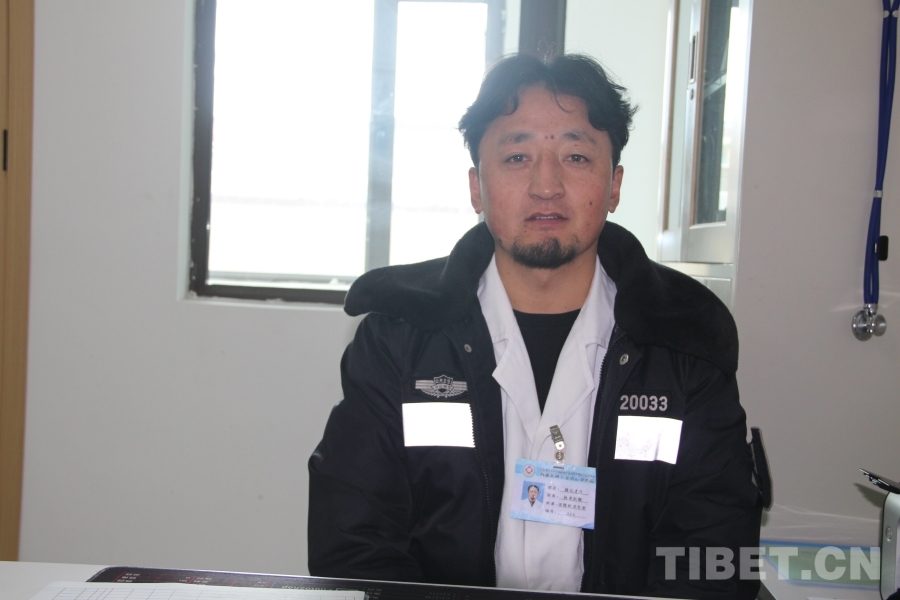 中國(guó)西藏網(wǎng)訊 雪白的大褂外披一件藏藍(lán)色冬裝便衣,這便是瑪曲縣阿萬(wàn)倉(cāng)中心衛(wèi)生院的執(zhí)業(yè)醫(yī)師楊長(zhǎng)才旦。他的胸牌上寫著“科室:洛隆村衛(wèi)生室”,表明他是鎮(zhèn)上五個(gè)大隊(duì)其中之一的村醫(yī),集中在中心衛(wèi)生院輪班為病患看診。