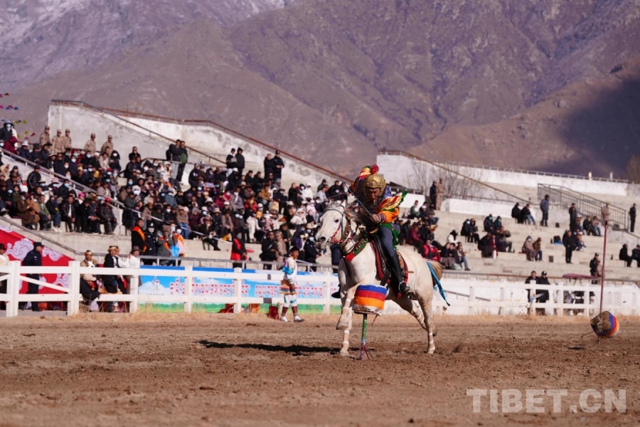 馬術表演現場,運動員們身穿民族服飾,在馬背上完成歌舞表演,以及劈斬跑道兩側障礙物、倒立、旋轉、射箭等各種高難度動作。賽馬現場,來自西藏各地的近20名選手躍馬揚鞭與駿馬默契配合,疾馳在賽道上。駿馬奔馳賽場,運動員動作敏捷,膽識過人,扣人心弦的單人單馬或多人多馬的比賽讓全場觀眾沸騰,尖叫聲、喝彩聲、掌聲連綿不斷。