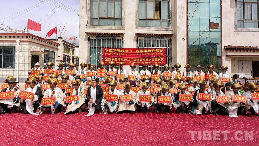 圖為定結(jié)縣定結(jié)鄉(xiāng)雜興村集體經(jīng)濟收入分紅儀式現(xiàn)場