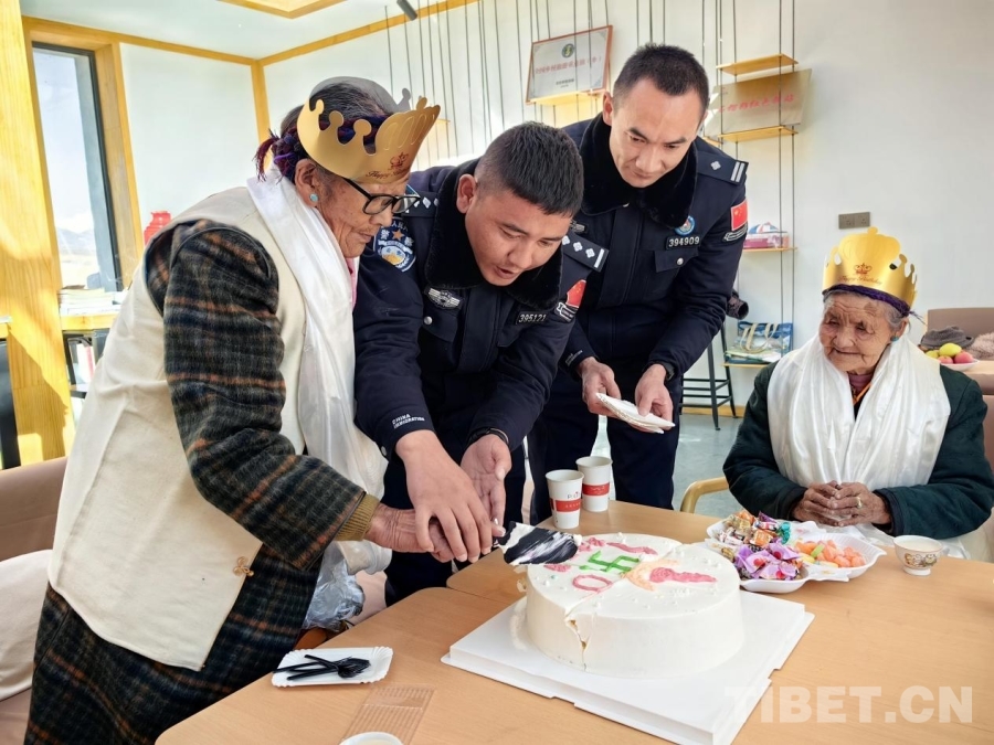 活動(dòng)中,警民攜手為老人們精心準(zhǔn)備了一場(chǎng)慶祝派對(duì),邊防民警、社區(qū)兩委班子成員、駐村工作隊(duì)隊(duì)員為老人獻(xiàn)上祝福的歌曲,定做精美的蛋糕,穿上代表高壽的藏式服裝等,并與老人們嘮家常,傾聽(tīng)他們的生活故事和需求?!?/span>
