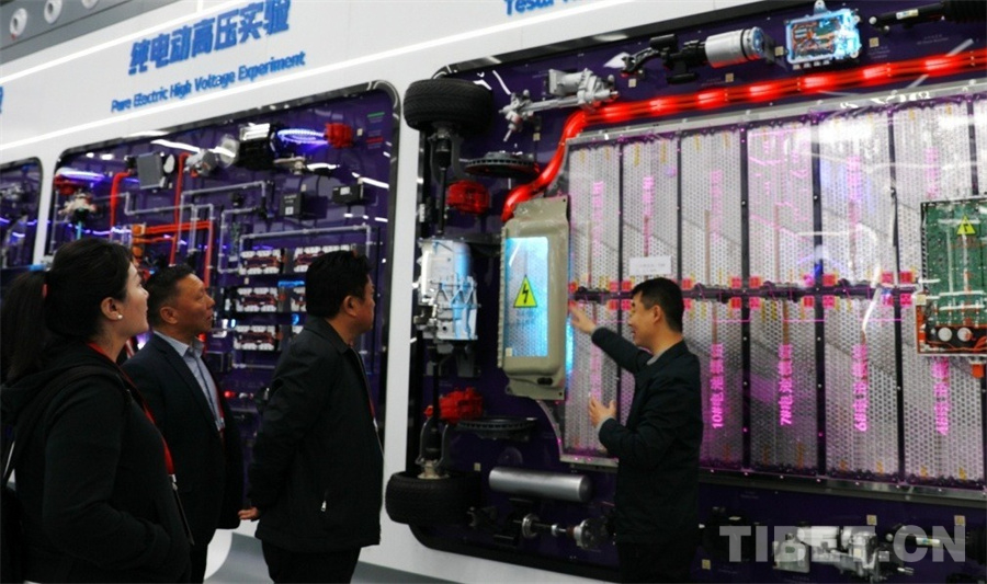 “這是由7104節(jié)電池組成的特斯拉的電池組,它是402伏的高壓電。所以,沒有經(jīng)過專業(yè)培訓(xùn)進(jìn)行電動(dòng)汽車維修會(huì)有一定的危險(xiǎn)性。”北方國(guó)際汽車教育展廳、車間負(fù)責(zé)人黨超為到訪的西藏自治區(qū)工商聯(lián)民營(yíng)企業(yè)家赴京學(xué)習(xí)參觀團(tuán)一行詳細(xì)介紹著墻上展示的電池組。大家聽得津津有味。
