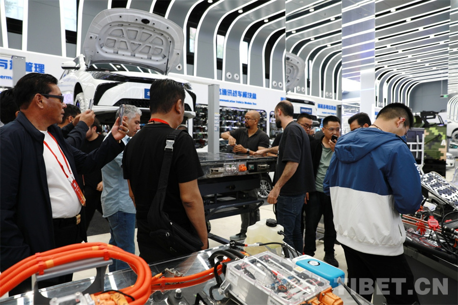 圖為觀摩來自伊朗、埃塞俄比亞等國(guó)家的學(xué)生實(shí)操新能源汽車電池組維修 攝影:劉莉
