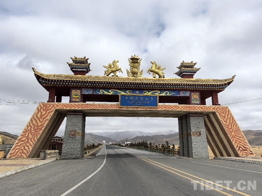 圖為瑪曲縣的“中國賽馬之鄉(xiāng)”牌樓 攝影:瑪吉