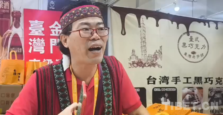圖為5月16日,第二屆拉薩進(jìn)口商品展覽會上,臺灣商人“洋蔥哥”講述自己在大陸做生意的經(jīng)歷 攝影:趙釗