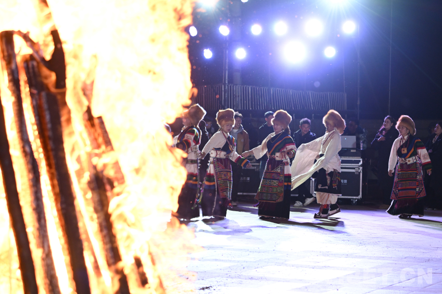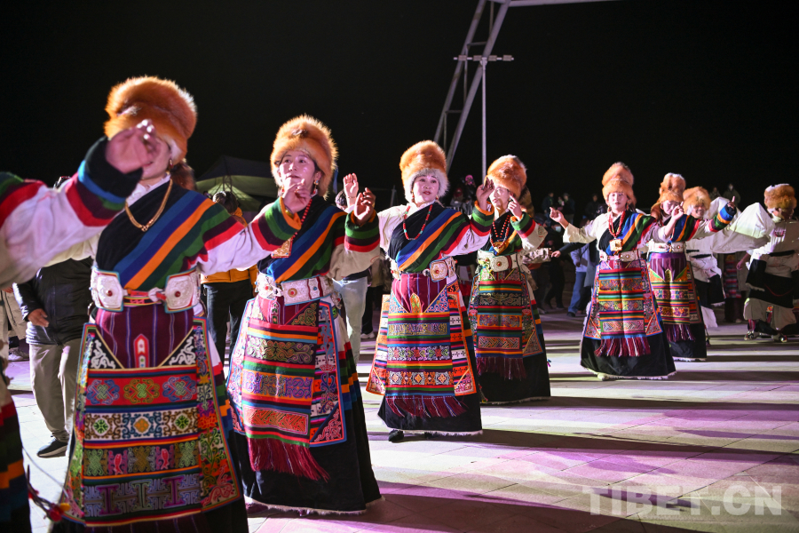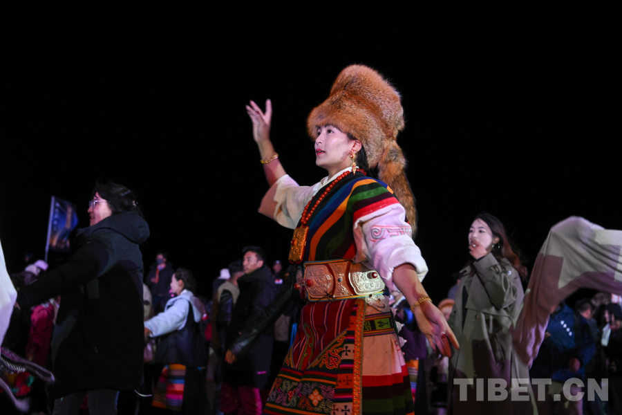 中國西藏網(wǎng)訊 5月18日晚,“情定當雄”篝火鍋莊晚會在西藏拉薩市當雄縣賽馬場舉行。晚會現(xiàn)場,以燃燒的篝火為中心,當?shù)孛癖娚碇?jié)日盛裝跳起歡快的鍋莊舞。熱情奔放的旋律,洋溢著濃郁的民族風情,讓來客們沉浸式體驗鍋莊,感受原生態(tài)淳樸的歌舞表演。(中國西藏網(wǎng) 記者/旦曲)
