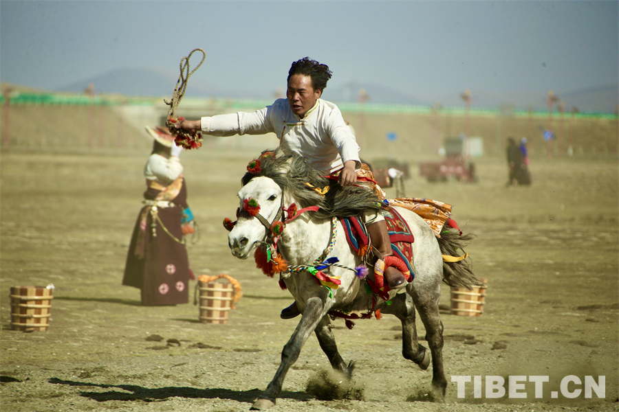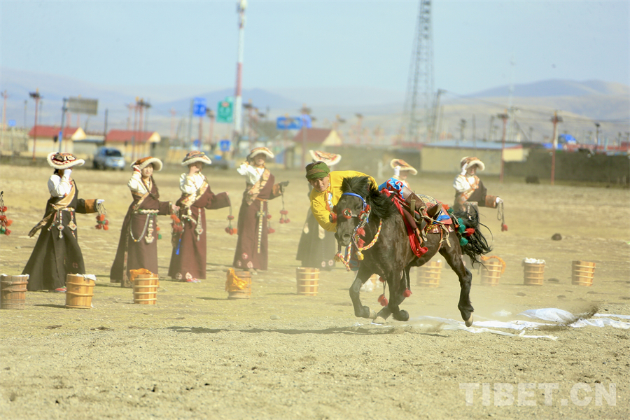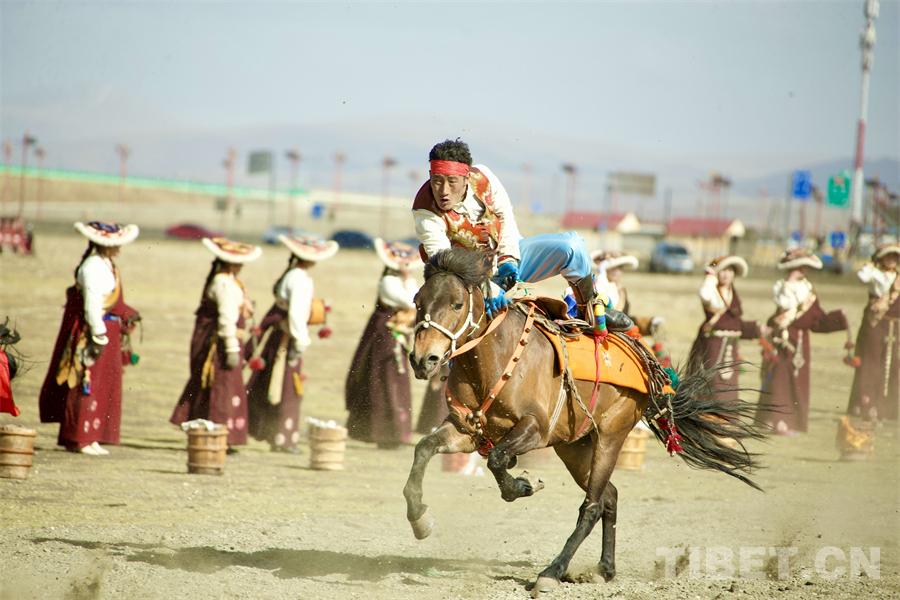 在海拔4000米左右的遼闊天地間,康巴漢子們駕馭著矯健的駿馬、身著華美的傳統(tǒng)服飾,如疾風(fēng)般掠過(guò)金色的草原,在馬背上展示跑馬射箭、乘馬射擊、跑馬拾哈達(dá)、跑馬倒立、跑馬懸體等高難度動(dòng)作,馬蹄聲聲、歡呼陣陣,交織成高原最豪邁的樂章。(中國(guó)西藏網(wǎng) 記者/畢然 龍真多吉)