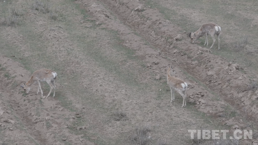 圖為無人機捕捉到的珍貴的野生普式原羚影像,它們的夏季被毛呈棕黃色,可以較好地融入周邊環(huán)境,同時性格警覺,對風吹草動都很敏感 青海省文旅廳供圖