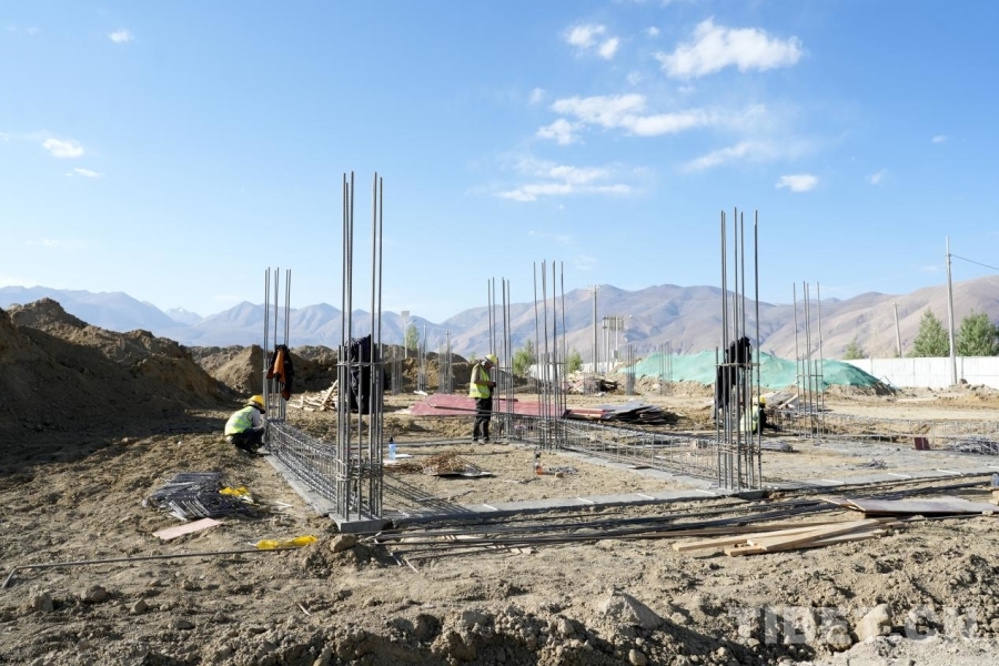 在雜村,一座座安置板房間,婦女們圍坐一起編織氆氌,孩子們玩鬧嬉戲,時有工作人員入戶進(jìn)行安全排查、普法宣傳,生活一如往常平靜安寧。而在距離安置點不遠(yuǎn)處的工地上,卻呈現(xiàn)出一片繁忙的景象——運輸車穿梭其間,機(jī)器轟鳴,工人忙著將箍筋固定在地基中,雜村重建工作正有序而迅速地推進(jìn)著。