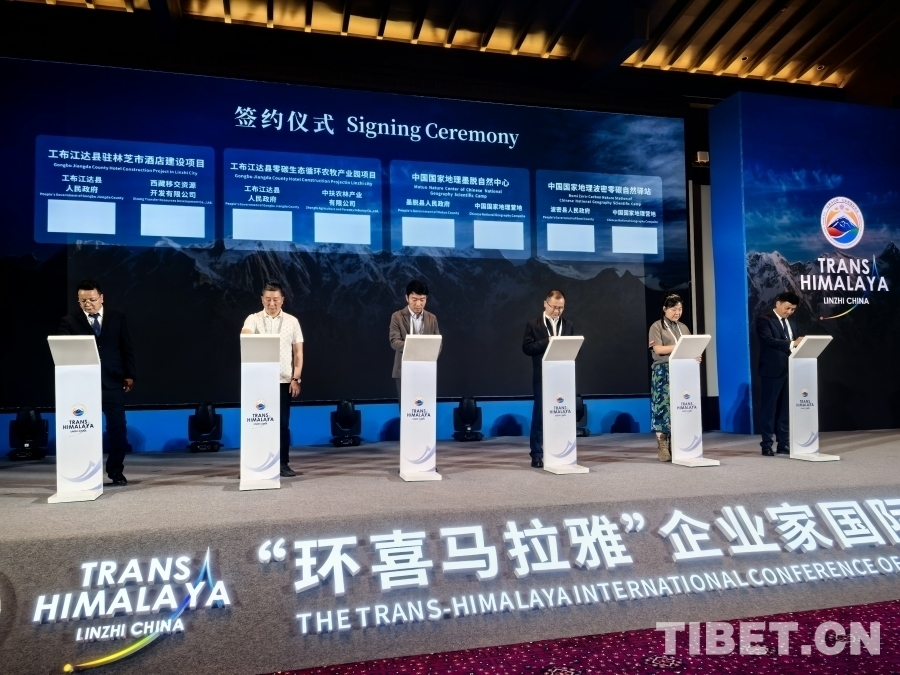 6月27日,“環(huán)喜馬拉雅”企業(yè)家國際會議在西藏林芝舉行。圖為現場簽約儀式 攝影:王淑