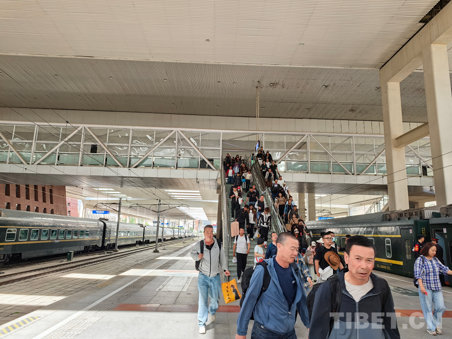 圖為拉薩火車站暑運(yùn)首日旅客在站臺(tái)乘車離藏