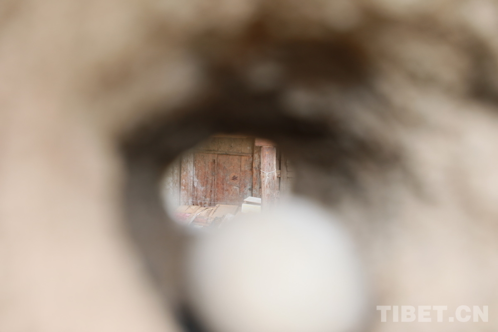 圖為位于四川省甘孜州鄉(xiāng)城縣青德鎮(zhèn)布機村的宗薩木府的古老夯土女兒墻上存留著正對大門的射擊孔,這樣的射擊孔還有多處,是當(dāng)年這座高大建筑的安保系統(tǒng) 攝影:劉莉