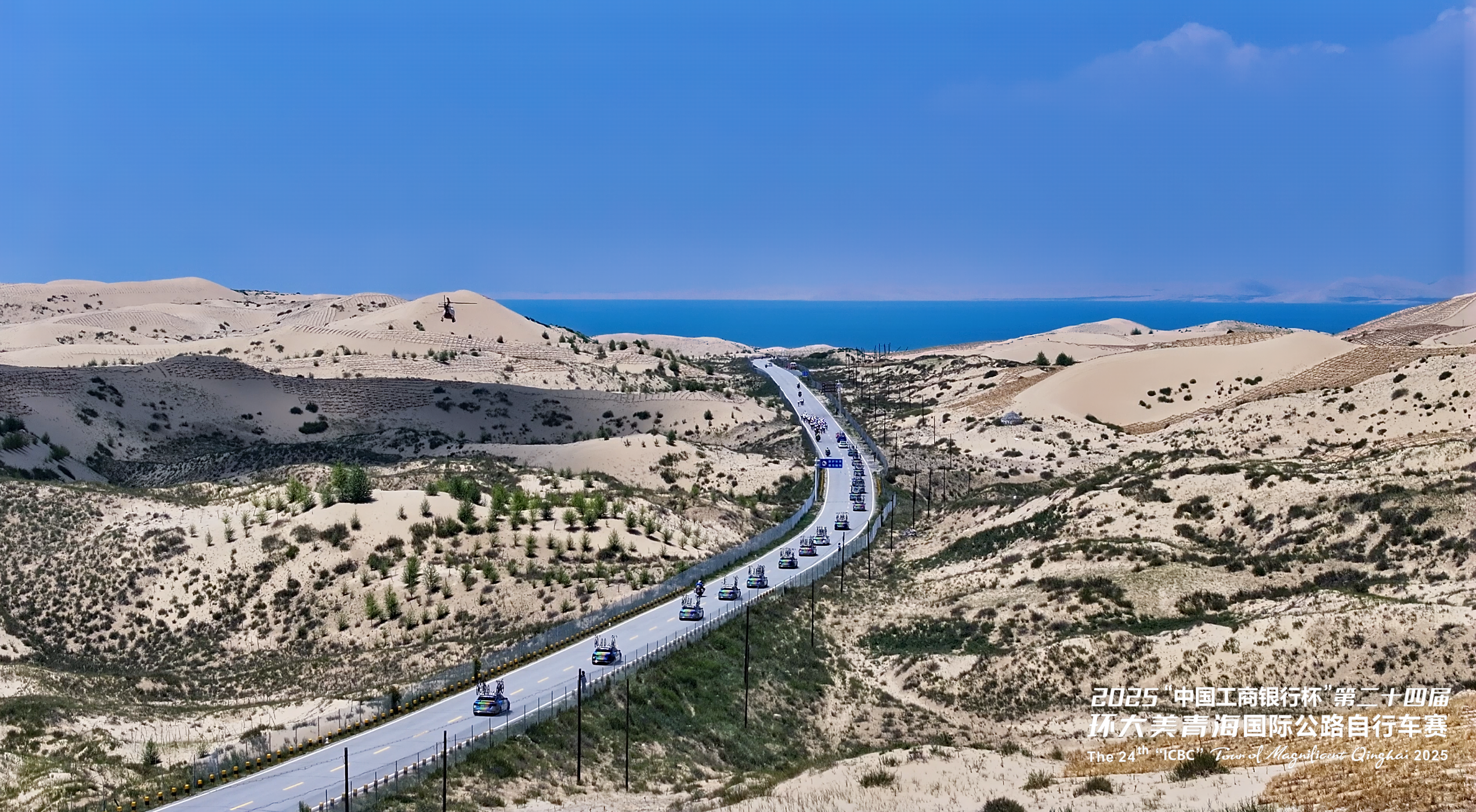 第二十四屆環(huán)青賽第七賽段——共和-海晏賽段。賽段經(jīng)過(guò)海拔約3740米的洛合埡口,居高臨下,以近乎180度的角度俯瞰青海湖,將湖面、山巒、草原盡收眼底。