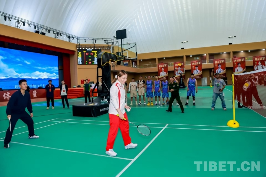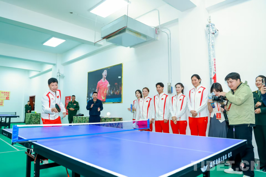 圖為奧運(yùn)冠軍一行來到西藏軍區(qū)某部