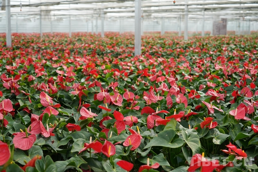 文成公主種下民族團結(jié)的種子,在今天依舊開出鮮艷的花。才納園區(qū)總投資6億元,其中江蘇援藏資金1.5億元。紅掌花卉基地就是江蘇省泰州市產(chǎn)業(yè)援藏的一個典范,基地由泰州國有企業(yè)蘇中園藝公司和才納園區(qū)合作建設(shè),總面積16畝,溫室規(guī)模1萬余平方米,年可生產(chǎn)鮮花10萬盆。