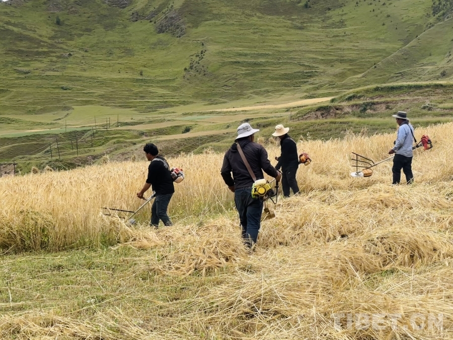 金穗低頭,豐收在望。孜榮村人們用勤勞的雙手繼續(xù)書寫著“高原糧倉(cāng)”的豐收故事。(中國(guó)西藏網(wǎng) 記者/畢然 龍真多吉)