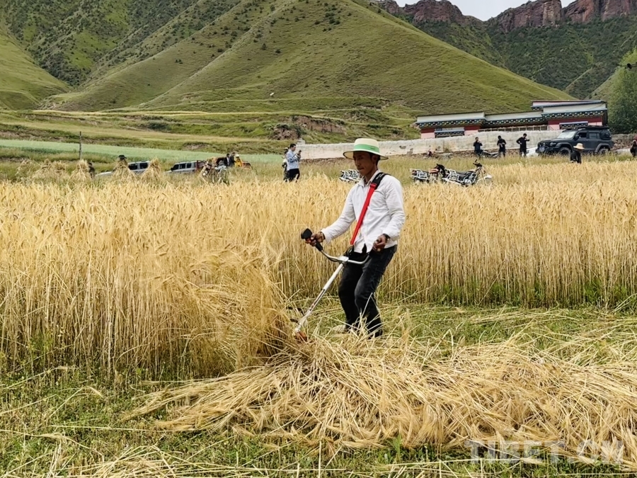中國(guó)西藏網(wǎng)訊 八月的青海省玉樹藏族自治州囊謙縣毛莊鄉(xiāng)孜榮村,青山疊翠,流水潺潺。瀾滄江支流孜曲河蜿蜒穿過(guò)村莊,滋潤(rùn)著兩岸廣袤的農(nóng)田。成熟的青稞田在高原陽(yáng)光下熠熠生輝,映照著農(nóng)牧民燦爛的笑容。在這片平均海拔超過(guò)4000米的土地上,村民們開鐮收割黑青稞,處處洋溢著豐收的喜悅。
