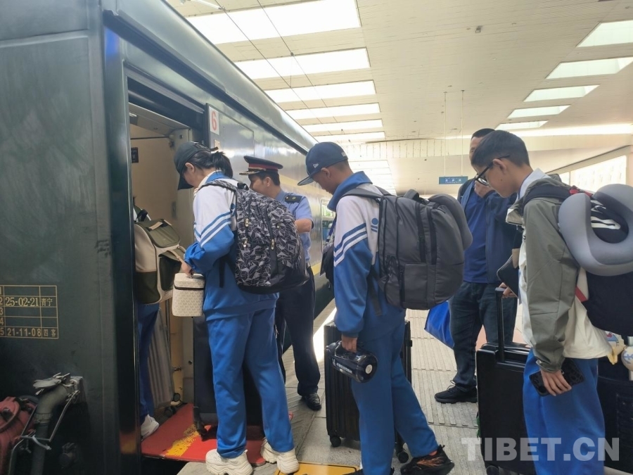 圖為西藏學子踏上返校列車
