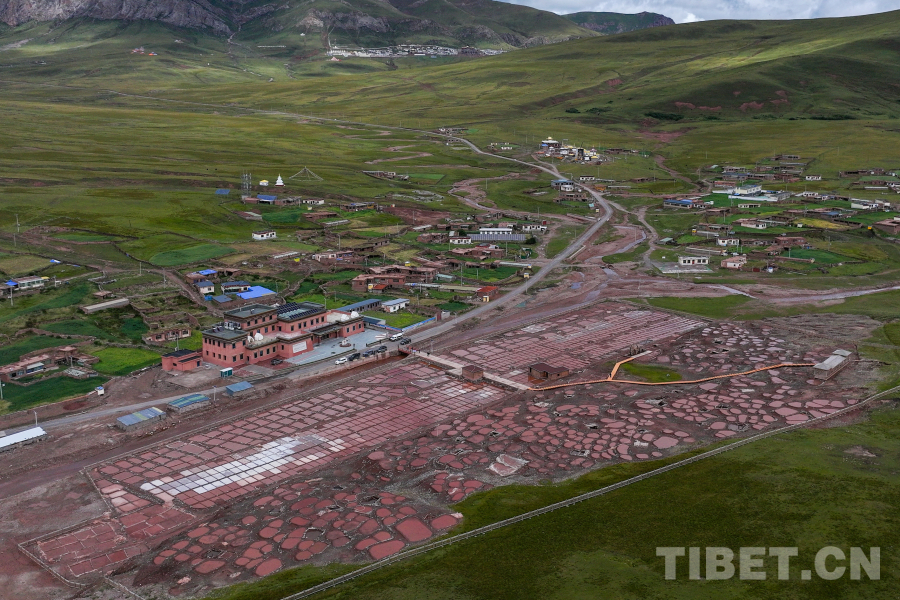 圖為航拍鏡頭下的青海省玉樹藏族自治州囊謙縣白扎鹽場(chǎng)全景 攝影:薛蒂