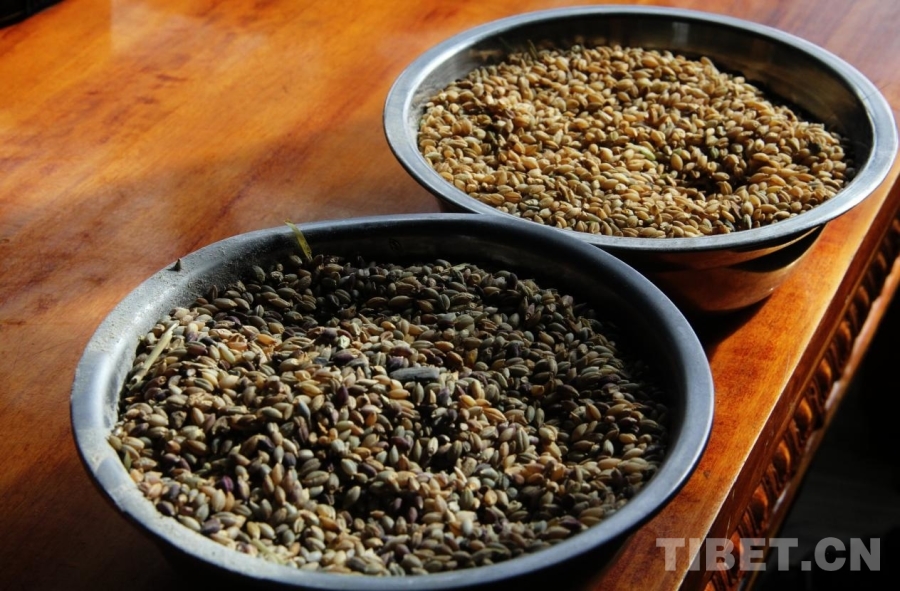 圖為文布南村產(chǎn)出的兩種青稞 攝影:趙釗