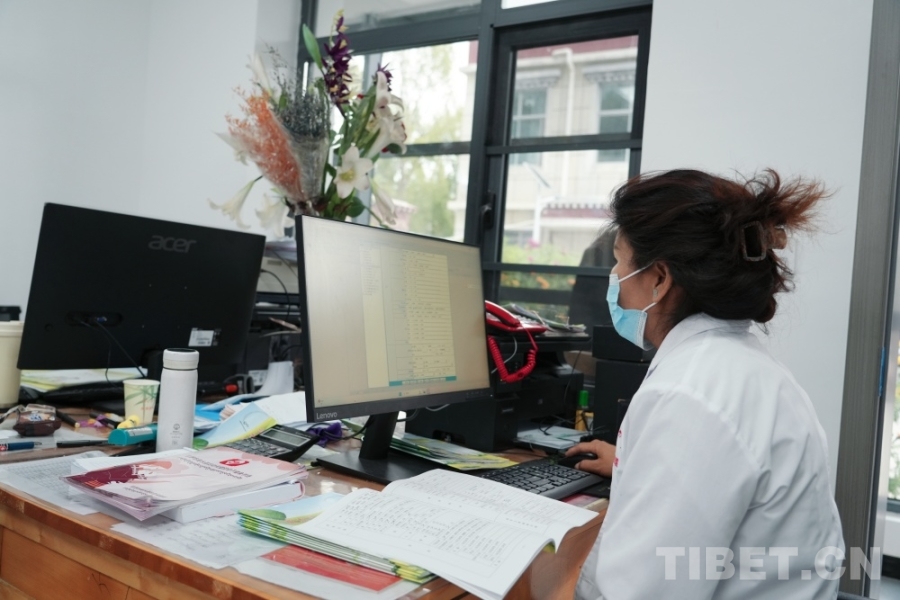 圖為茶巴朗村衛(wèi)生室里,醫(yī)生在錄入村民的體檢數(shù)據(jù) 攝影:王茜
