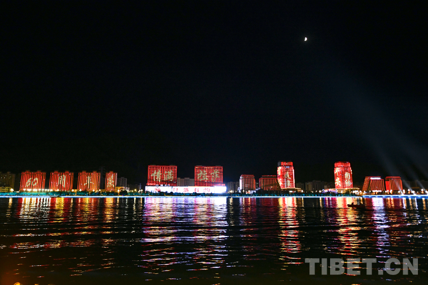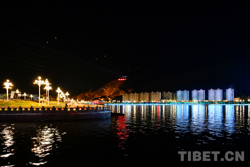 圖為國慶前夕拉薩河畔璀璨燈光 攝影:趙振宇